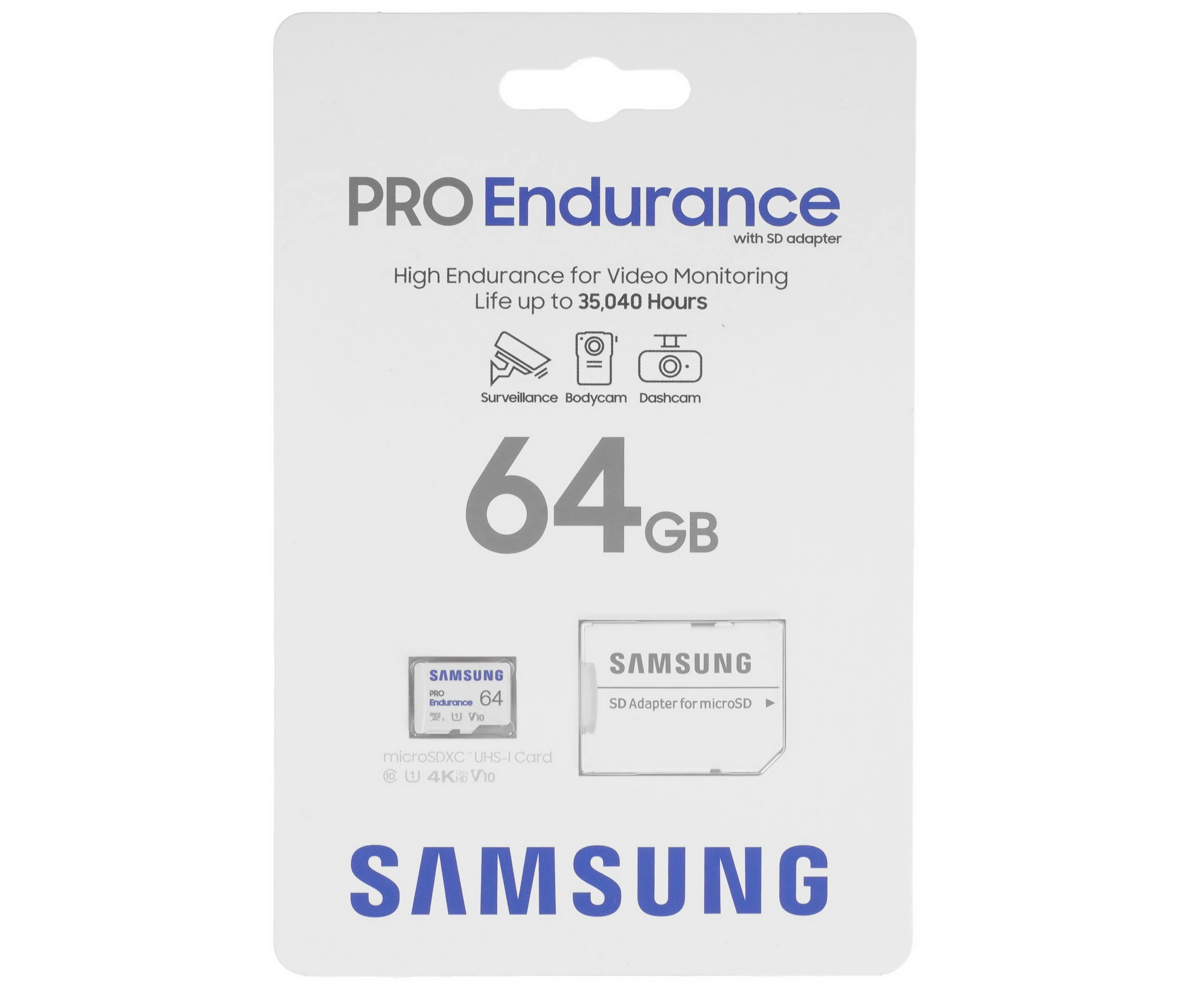 Карта памяти Samsung Pro Endurance (для видеорегистратора) Class 10 (MB-MJ64KA/APC) , microSDXC 64GB UHS-I, W 30 МБ/с, R 100 МБ/с, адаптер на SD