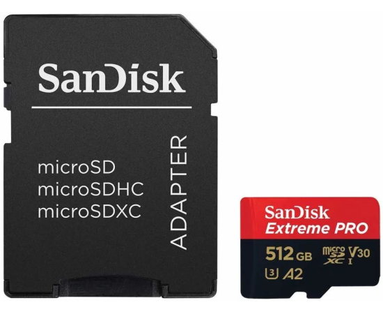 Карта памяти SanDisk (SDSQXCD-512G-GN6MA) 512GB microSDXC Class 10 UHS-I A2 C10 V30 U3 Extreme Pro (SD адаптер) 200MB/s