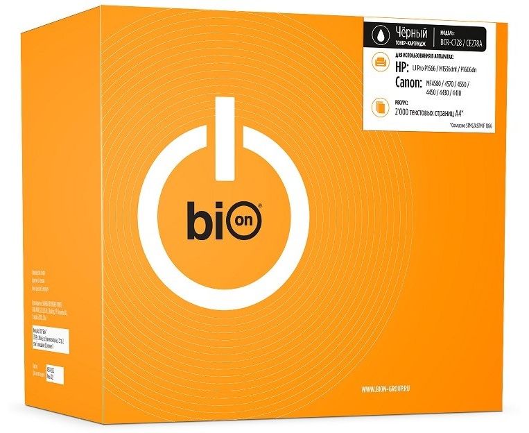 Картридж Bion BCR-C728/CE278A для HP LaserJet Pro P1566/P1606dn/M1536dnf; Canon i-SENSYS MF4430/MF4450/MF4570/MF4580/MF4410/FAX-L150/FAX-L170/MF455