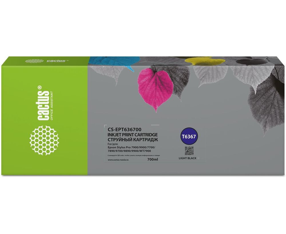 Картридж Cactus T6367 (CS-EPT636700) струйный серый (700мл) для Epson Stylus PRO 7700/7890/7900/9700