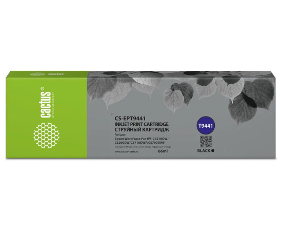 Картридж Cactus T9441 (CS-EPT9441) струйный черный (66мл) для Epson WorkForce WF-C5290DW/WF-C5790DW