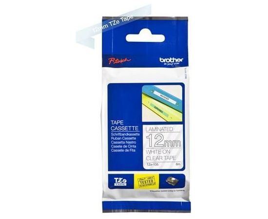 ламинированная лента для печати наклеек, белый на прозрачном фоне, 12мм х 8м