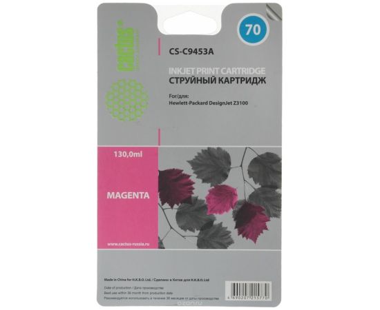 Картридж струйный Cactus CS-C9453A пурпурный для №70 HP Designjet Z3100 (130ml)