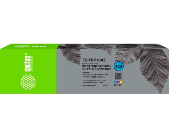 Картридж струйный Cactus CS-F6V16AE 123 многоцветный (6.4мл) для HP HP DeskJet 2130
