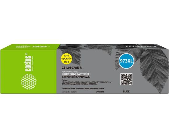 Картридж струйный Cactus CS-L0S07AE-R 973XL черный 240мл для HP PageWide Pro 452dw/477dw