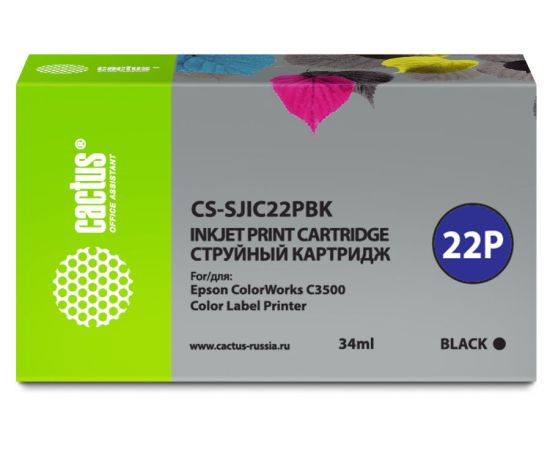 Картридж струйный Cactus CS-SJIC22PBK черный (34мл) для Epson ColorWorks C3500