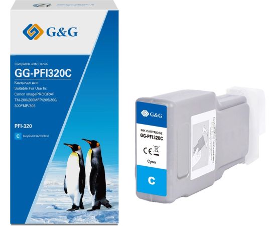 Картридж струйный G&G GG-PFI320C PFI-320C голубой (300мл) для Canon imagePROGRAF TM-200/200MFP/205/300/300MFP/305