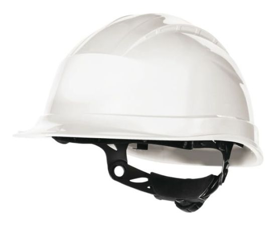 Каска Delta Plus QUARTZ UP III белого цвета QUARUP3BC предназначена для защиты головы от уф-излучений, механических повреждений и поражения электрическим током до 1000 В.