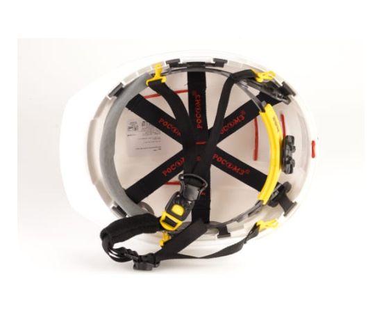Внутренняя оснастка с текстильными амортизационными лентами крепится к корпусу в 8-ми точках. Шесть ступней регулировки высоты ношения.