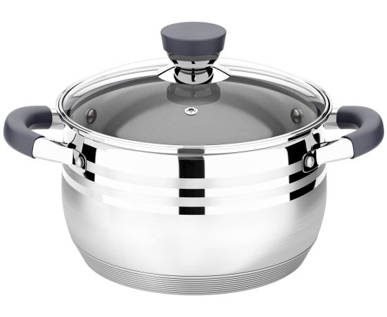 Кастрюля LARA LR02-472 (нерж) серия 20см, 3.9л, стал.ручки, капсул индук дно, жароп.крышка