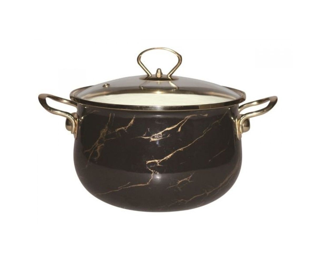 Кастрюля 5 л эмалированная со стекл. кр., ручка золото; цвет: чёрный мрамор