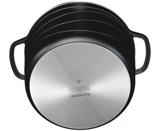 Кастрюля комплектуется крышкой из жаростойкого стекла с ободом из высококачественной нержавеющей стали.