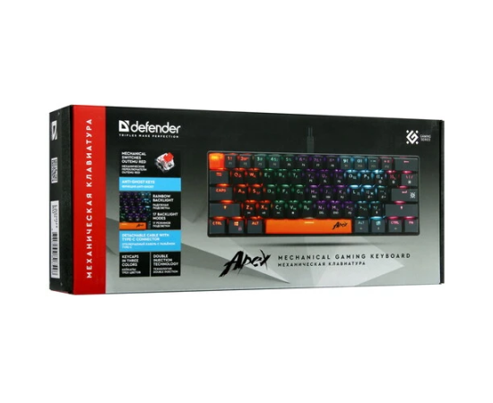 Ультракомпактная механическая клавиатура Defender Apex GK-002 с кейкапами трех цветов и тихими красными переключателями. Основные преимущества модели: регулируемая радужная подсветка, 21 клавиша, поддерживающая функцию Anti-ghost, а также повышенная износостойкость благодаря технологии Double injection.