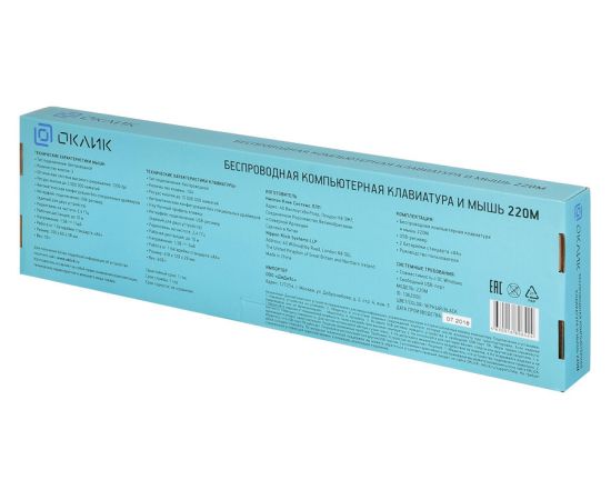 Комплект поставки: Беспроводная компьютерная клавиатура и мышь 220М.