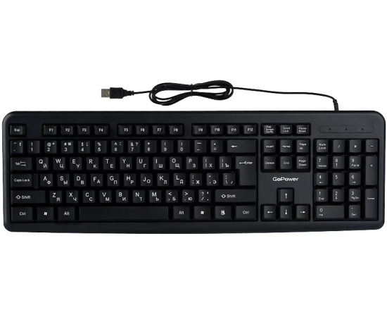 Клавиатура проводная GoPower GPK01 классическая USB 1.35м черный (1/20)