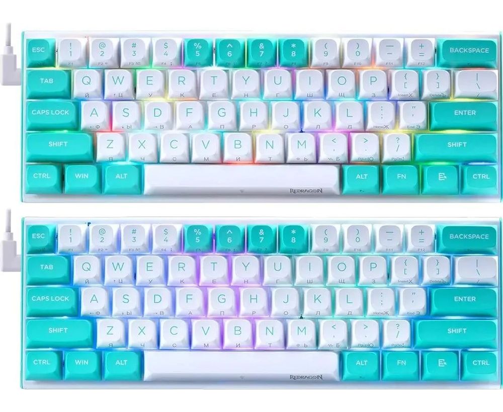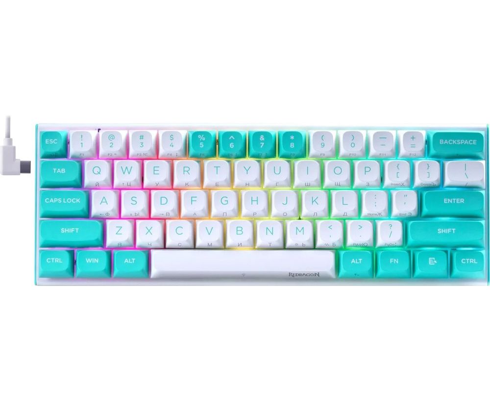 Клавиатура REDRAGON Fidd RU RGB бирюзовый/белый (72187)
