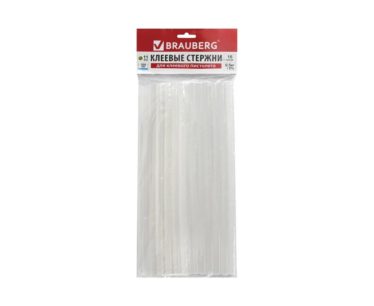 Клеевые стержни BRAUBERG 670295 диаметр 11мм, длина 300мм, прозрачные, комплект 16 штук