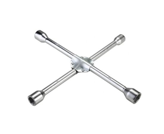 Ключ баллонный крестовой предназначен для снятия и установки колес автомобиля. Конструкция специнструмента позволяет увеличить рычаг приложения усилий в тех ситуациях, когда это необходимо для оперативной работы при замене колеса. Имеет четыре головки размерами 17 мм, 19 мм, 21 мм и 22 мм.