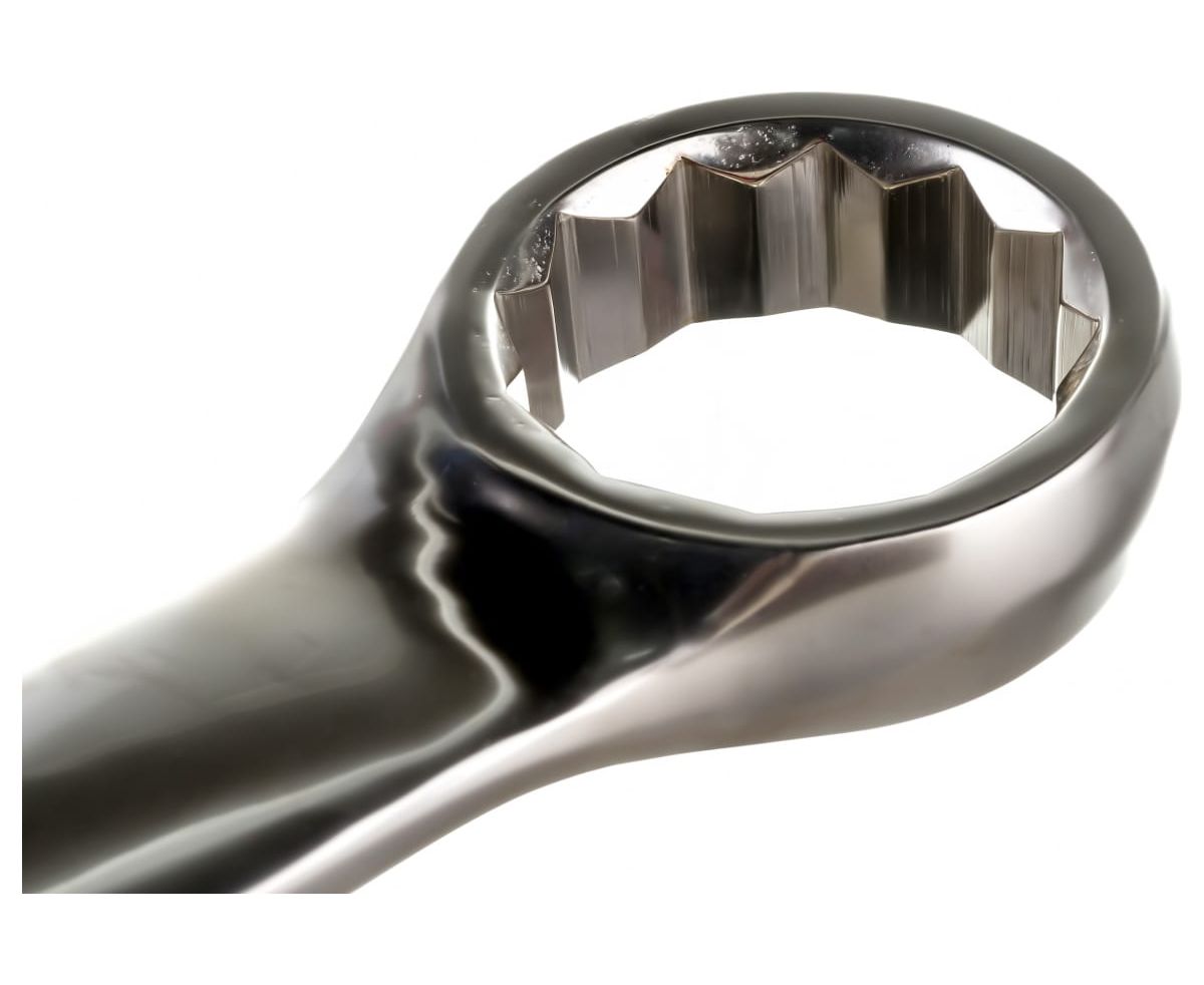 Комбинированный ключ подходит для работы с крепежом, в том числе при большом усилии. Специальное покрытие позволяет защитить инструмент от влаги. Это сохраняет общую прочность инструмента.