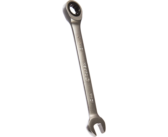 Комбинированный ключ с трещоткой TOPEX 35D747 имеет две рабочие части, с помощью которых обеспечивается качественная работа. Рожковая часть выполнена U- образной формой, гарантируя работу в труднодоступных местах. Накидная часть с трещоточным механизмом, состоящая из 48 зубцов, уменьшает время обработки. Инструмент выполнен из хром-ванадиевой стали.
