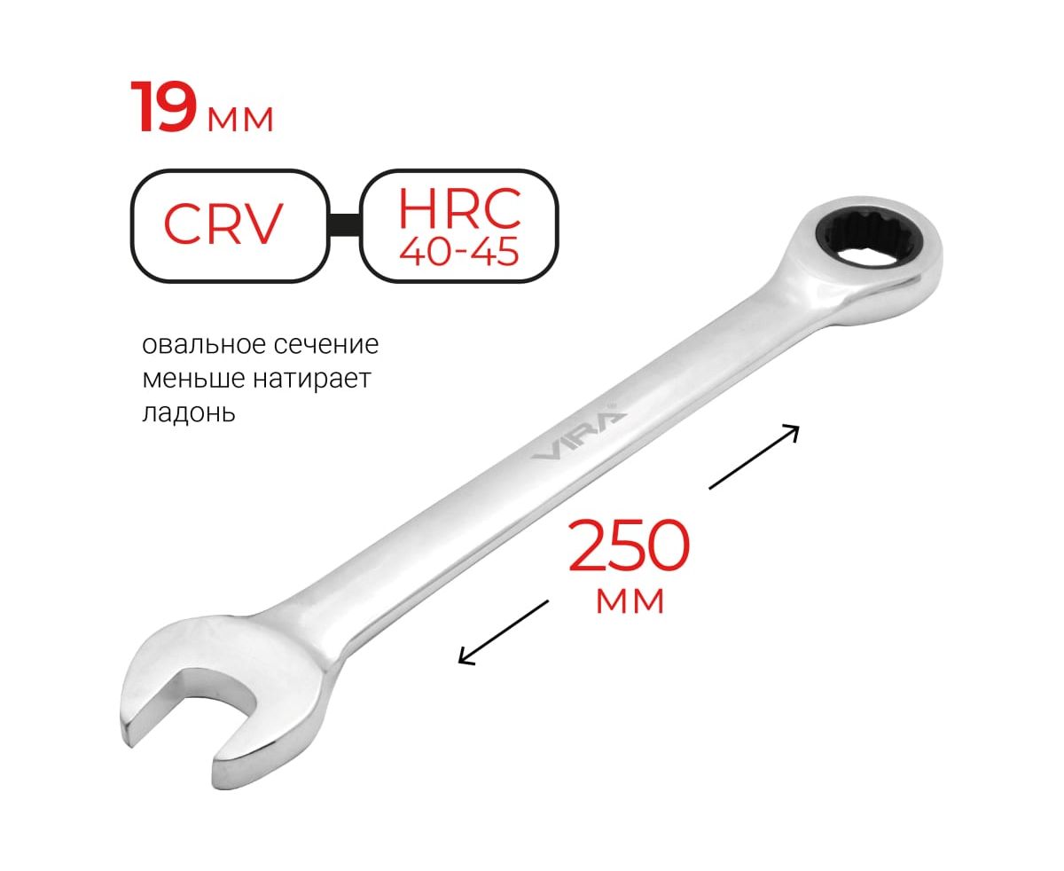 Ключ комбинированный VIRA 511075 c трещоточным механизмом 19 мм