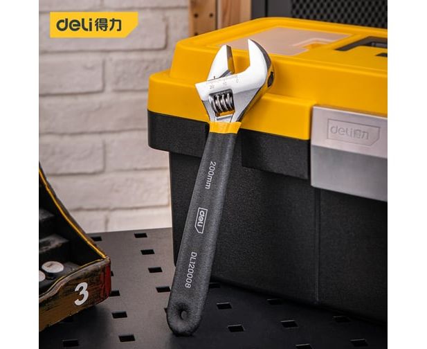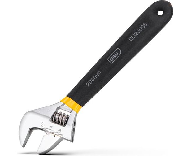 Ключ разводной Deli DL120008 200мм, противоскользящая обливная ручка, диапазон захвата 0-28мм