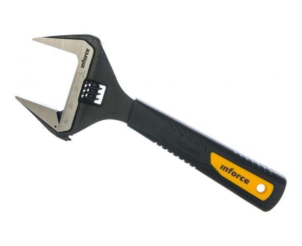 Разводной ключ 150 мм Inforce 06-05-37 удобен в использовании и может заменить собой несколько гаечных рожковых ключей. Наличие рельефной двухкомпонентной рукоятки исключает скольжение инструмента в руках.