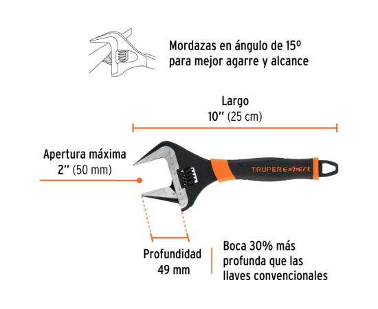 Ключ разводной Truper PET-10XA (101035) с узкими губками 250 мм