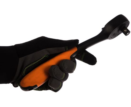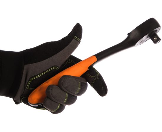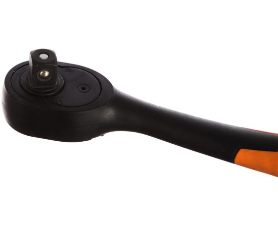 Трещоточный ключ (изогнутый, 1/2 дюйма, 250 мм) NEO 08-511 выполнен из композитного материала высокой прочности. Двухкомпонентная рукоятка не скользит в руках. Трещоточный механизм изготовлен из хромованадиевой стали. Угол поворота инструмента не менее 5 градусов.