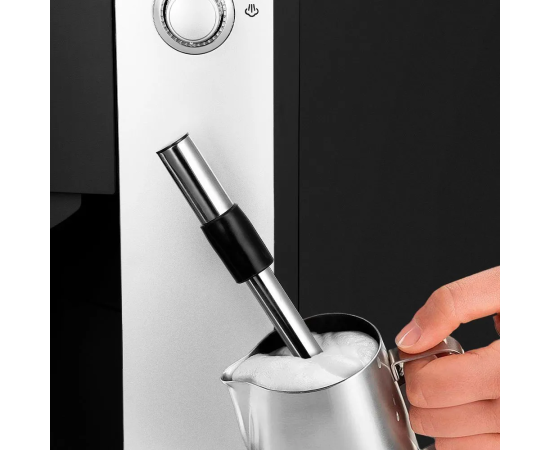 У кофемашины есть съёмный стимер. Благодаря наличию стимера вы можете включить подачу горячей воды или пара. Паром можно подогреть напитки или самостоятельно взбить молочную пену в питчере. Вы можете снять стимер и вместо него установить капучинатор.