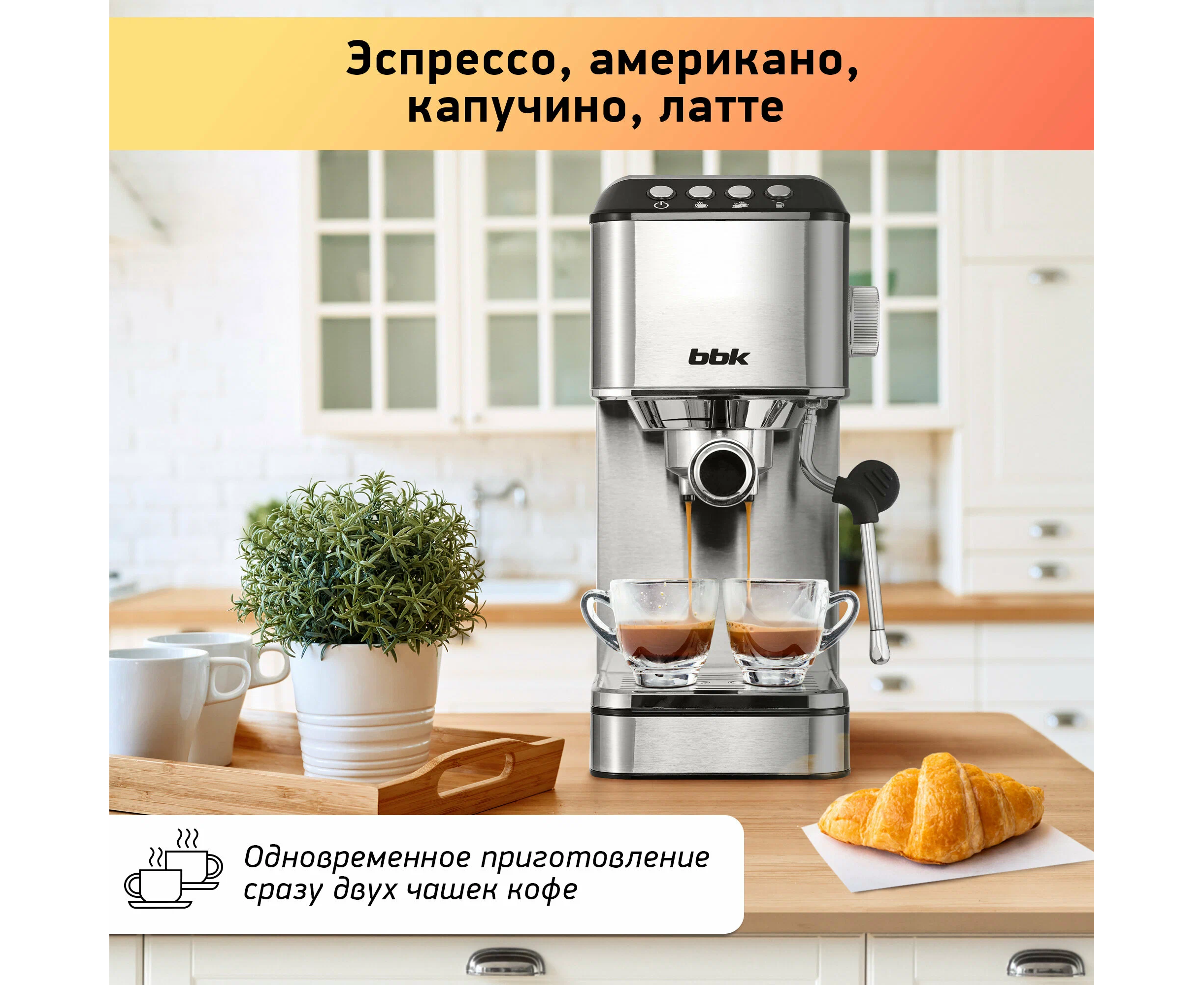 автоотключение после приготовления напитка, автоотключение при неиспользовании, одновременное приготовление двух чашек, подогрев чашек