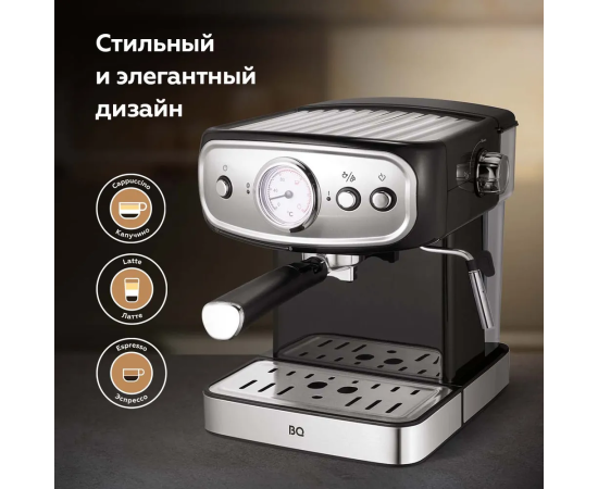 Кофеварка рожковая с капучинатором BQ CM1006 Черно-серебристая