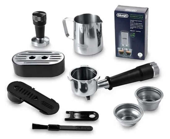 Кофеварка, подставка для небольших чашек, темпер, питчер, фильтры, кисть, игла для чистки, мерная ложка