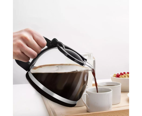 Кофеварка оборудована противокапельной системой — затвором, приостанавливающим подачу кофе при вынимании кофейника из прибора. Вы можете налить кофе в чашку, не дожидаясь окончания приготовления.