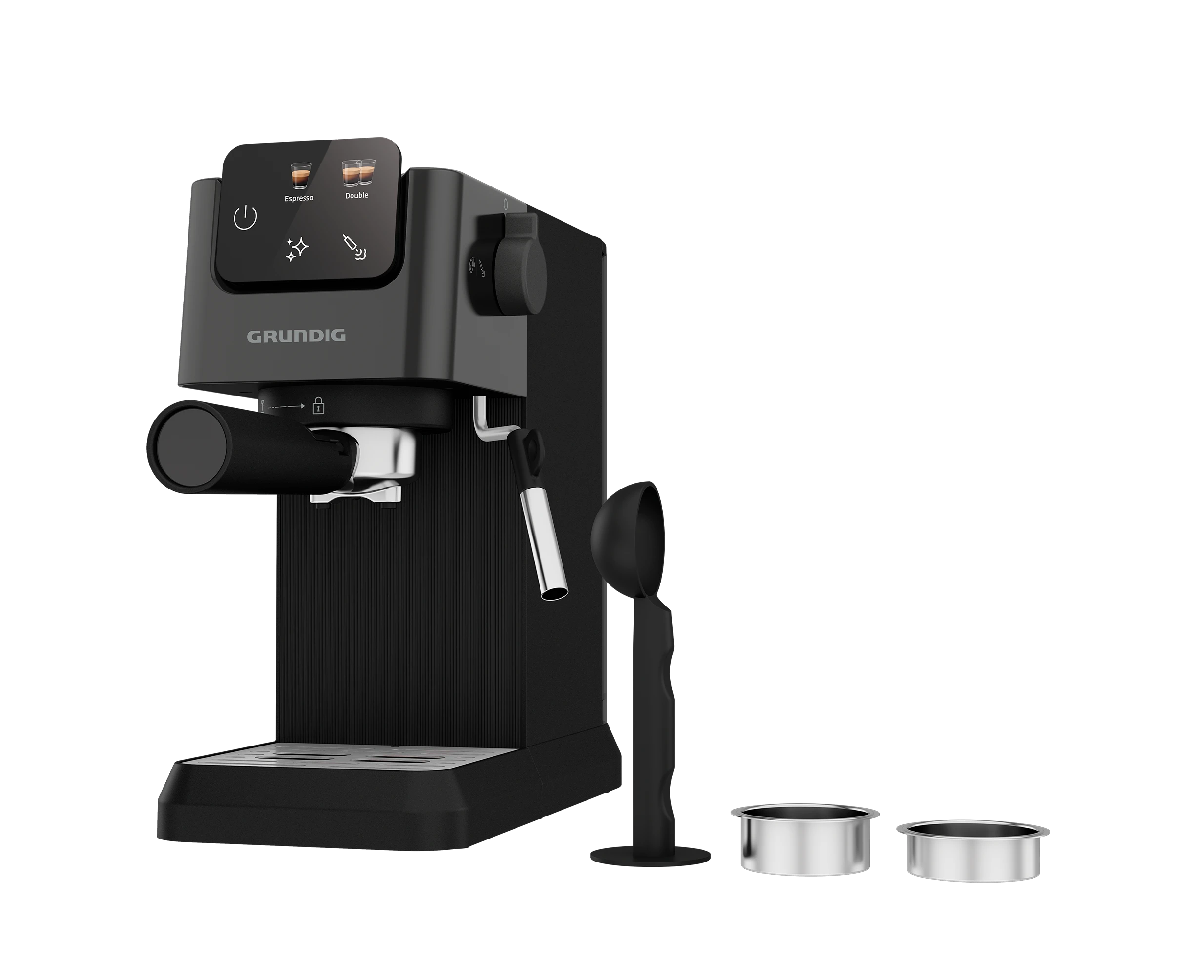 Рожковая кофеварка Grundig KSM 4330 — компактное решение для ценителей качественного ароматного кофе. Оснащенная ручным капучинатором, она позволяет создавать пышную молочную пену для приготовления капучино или латте, как в любимой кофейне. Сенсорный дисплей обеспечивает интуитивно понятное управление, предоставляя быстрый доступ ко всем функциям устройства.