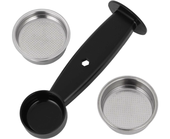 Приготовление кипятка; Индикация заполнения каплесборника; Съемный резервуар для воды; Пресс для утрамбовки молотого кофе; Насадка панарелло; Рожок с клапаном давления; В комплекте: мерная ложка, металлический фильтр