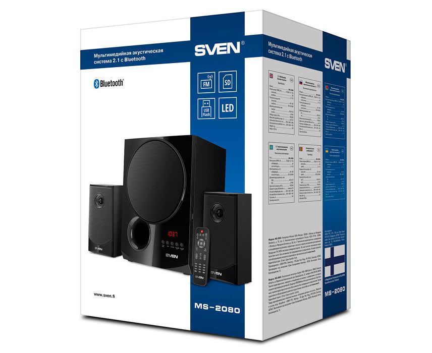 Акустическая система 2.1 SVEN АС MS-2080, черный (70 Вт, Bluetooth, пульт, дисплей, FM, USB, SD)