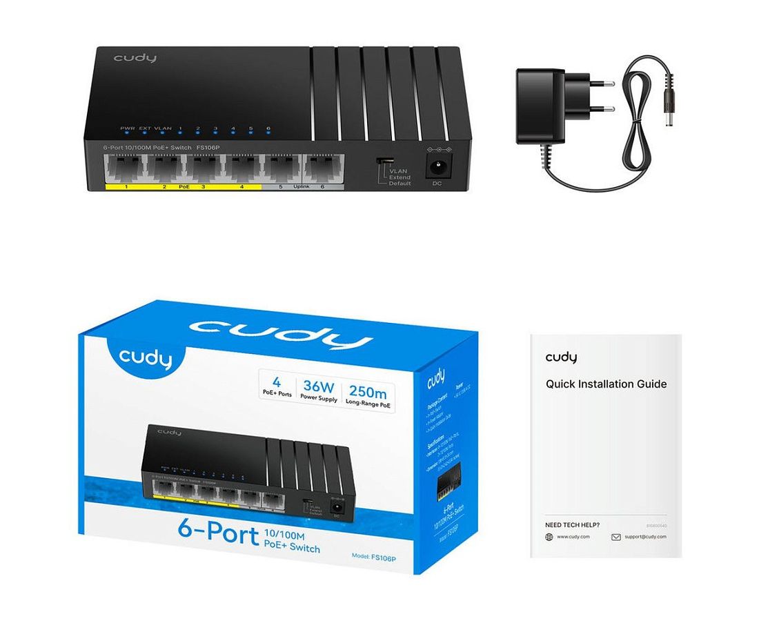 Коммутатор Cudy FS106P с 6 портами 10/100Мбит/с и поддержкой PoE+ (36Вт)