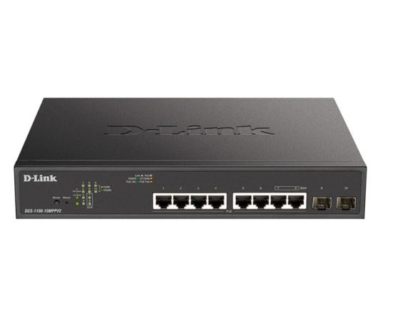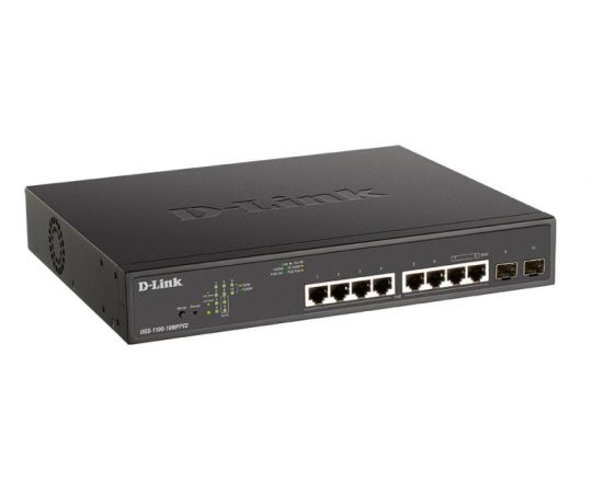Коммутатор D-Link DGS-1100-10MPPV2/A3A, with 8 ports 10/100/1000Base-T and 2 ports 1000Base-X SFP (6 PoE ports 802.3af/802.3at (30 W)
