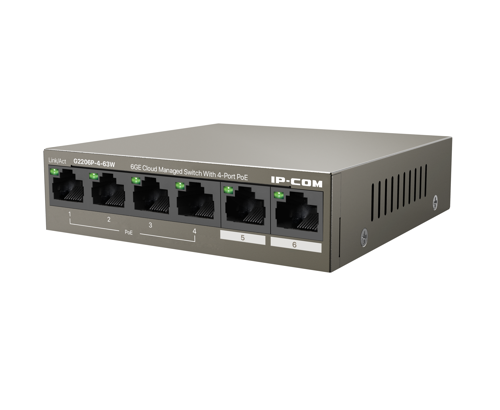 Коммутатор IP-COM G2206P-4-63W Web smart PoE от IP-COM с 4 гигабитными портами PoE (максимальная мощность PoE 5Вт)