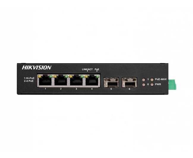 Коммутатор неуправляемый Hikvision DS-3T0506HP-E/HS 4x1Гбит/с 2SFP 3PoE+ 1PoE++ 60W