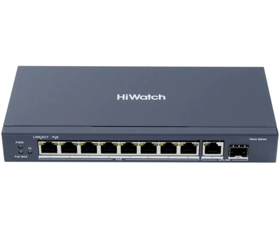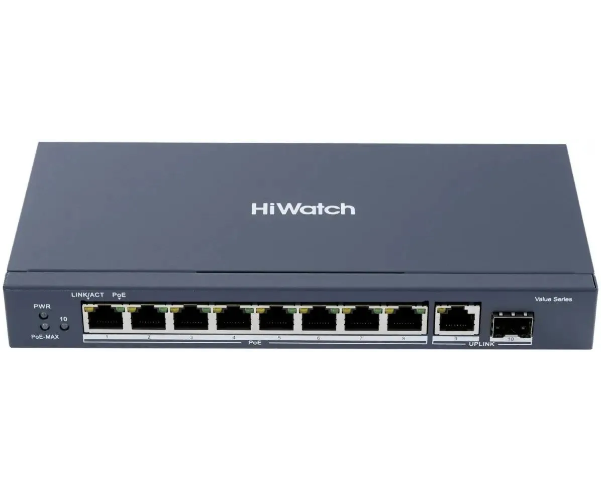 Коммутатор неуправляемый HiWatch DS-S1008GP 8x100Мбит/с 2x1Гбит/с 58W