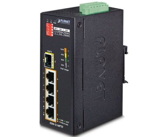 Коммутатор PLANET ISW-514PTF IP30 4-Port/TP + 1-Port Fiber(SFP)