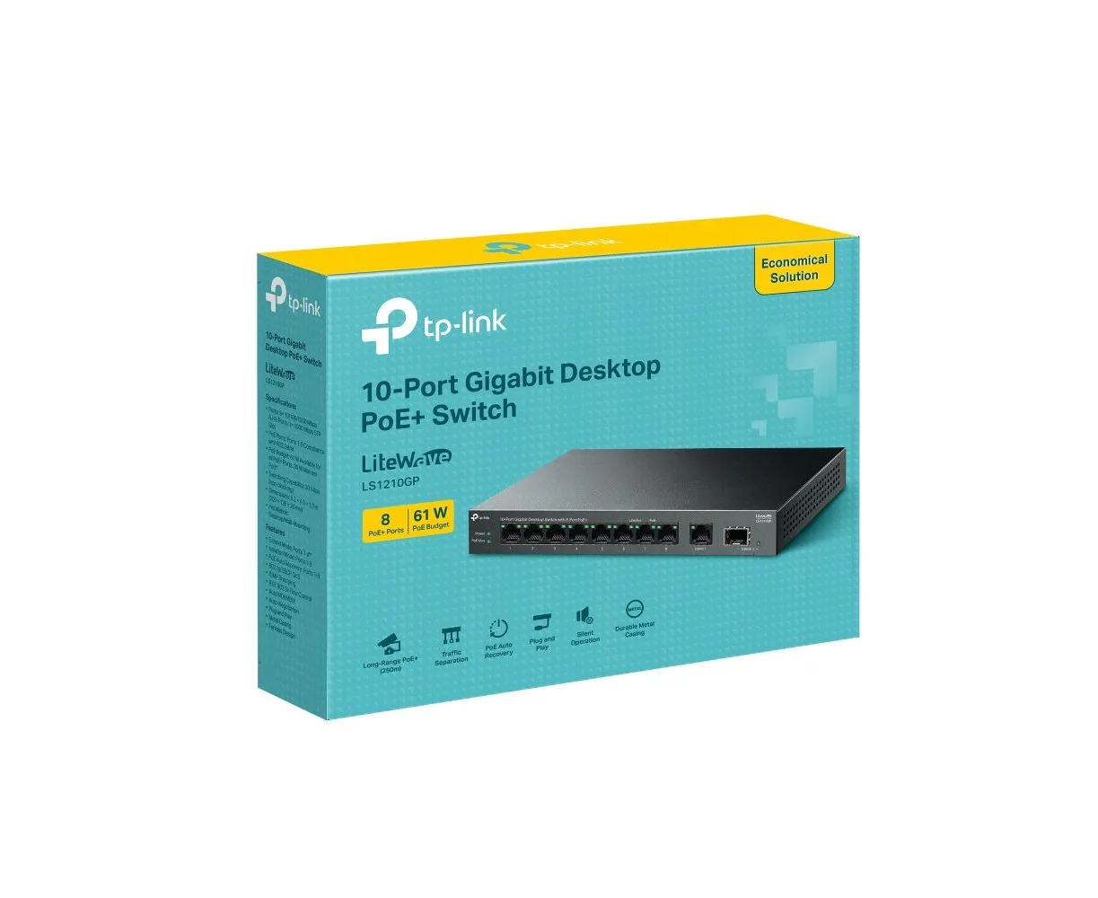 Коммутатор TP-Link LS1210GP 9x1Гбит/с 1SFP 8PoE 61W неуправляемый