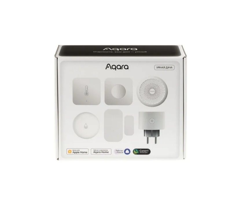 Aqara Выключайте свет из кровати, узнайте вовремя о протечке или включите обогреватель, пока едете на дачу. В комплекте — главные устройства Умного дома Aqara. Он подойдет как для знакомства с новой технологией, так и для подарка знакомым и близким. Комплект продается по специальной цене. Приезжайте в тёплый дом Подключите к Умной розетке обогреватель и включайте его дистанционно, когда едете на дачу. Управляйте через голосовых помощников Попросите Алису, Марусю или Siri, и они включат Умную розетку или сообщат температуру в доме. Сделайте дом безопаснее Датчики пришлют push-уведомление о взломе или протечке и включат сигнализацию. Управляйте Умным домом в одно касание Используйте беспроводную кнопку как дверной звонок или для управления устройствами Aqara. Состав комплекта: Центр Умного Дома M1S Gen 2, модель HM1S-G02 Датчик протечки Т1, модель WL-S02D Датчик температуры и влажности T1, модель TH-S02D Датчик открытия дверей и окон Т1, модель DW-S03D Беспроводная кнопка T1, модель WB-R02D Умная розетка, модель SP-EUC01 Home