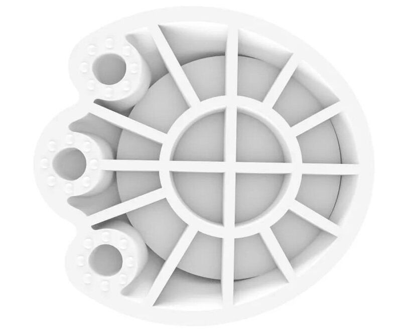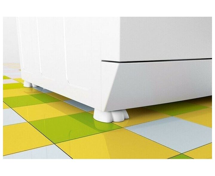 Конструкция с рёбрами жёсткости эффективно поглощает вибрацию, а также равномерно распределяет нагрузку на пол. Благодаря рельефной поверхности лапок ножки техники не скользят.