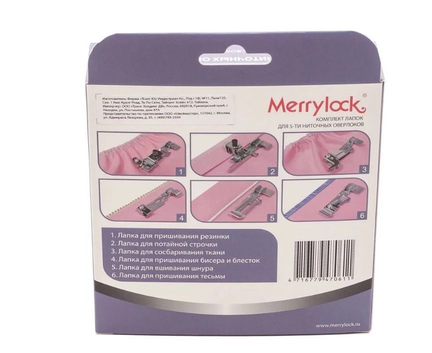Набор из 6-ти лапок Merrylock для 5-ниточного оверлока. Комплект включает в себя: