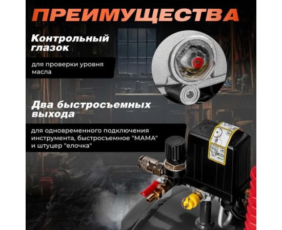 прорезиненные колеса и ручка на ресивере для удобства транспортировки.