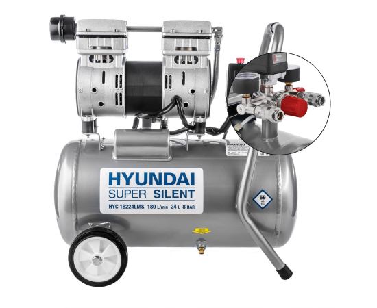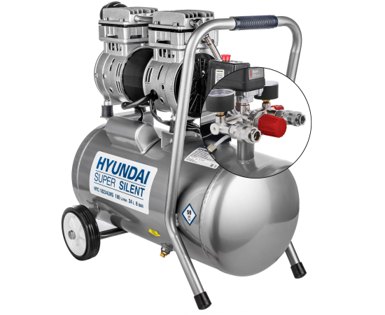 Компрессор поршневой Hyundai HYC 18224LMS безмасляный 180л/мин 24л 1000Вт серебристый