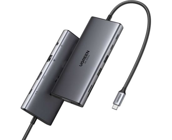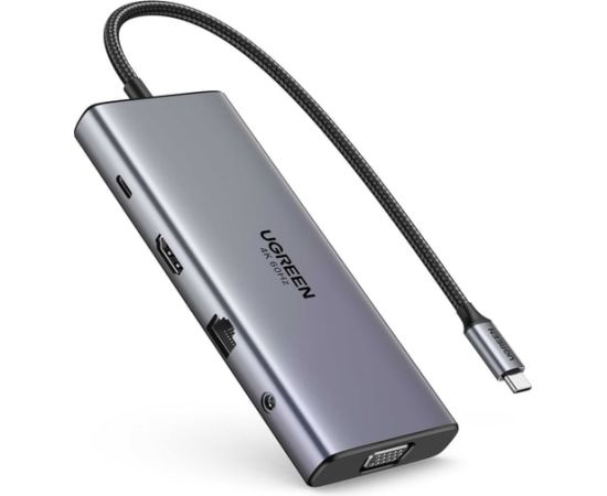Конвертер UGREEN CM639 (45520) 11-in-1 4K 60Hz 2xUSB-C 3.2+USB-A 3.2+USB-A 3.0+HDMI+VGA+RJ45 Gigabit+SD/TF+AUX3.5mm+PD Converter серый